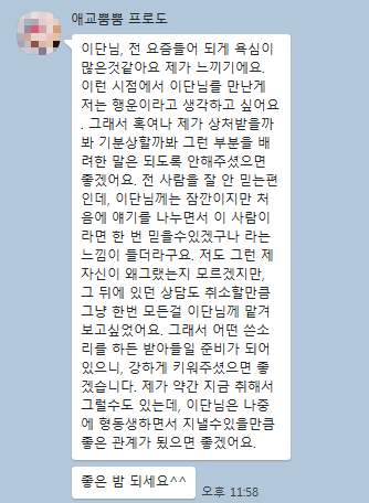 “다들 힘든 시기인데, 저 혼자만 이렇게 좋은 시간을 보내도 되나 싶을 정도로 연애와 비즈니스에서 좋은 결과들이 많이 나오고 있고, 그래서 뭔가 죄책감을 느낄 정도입니다. 감사합니다.”